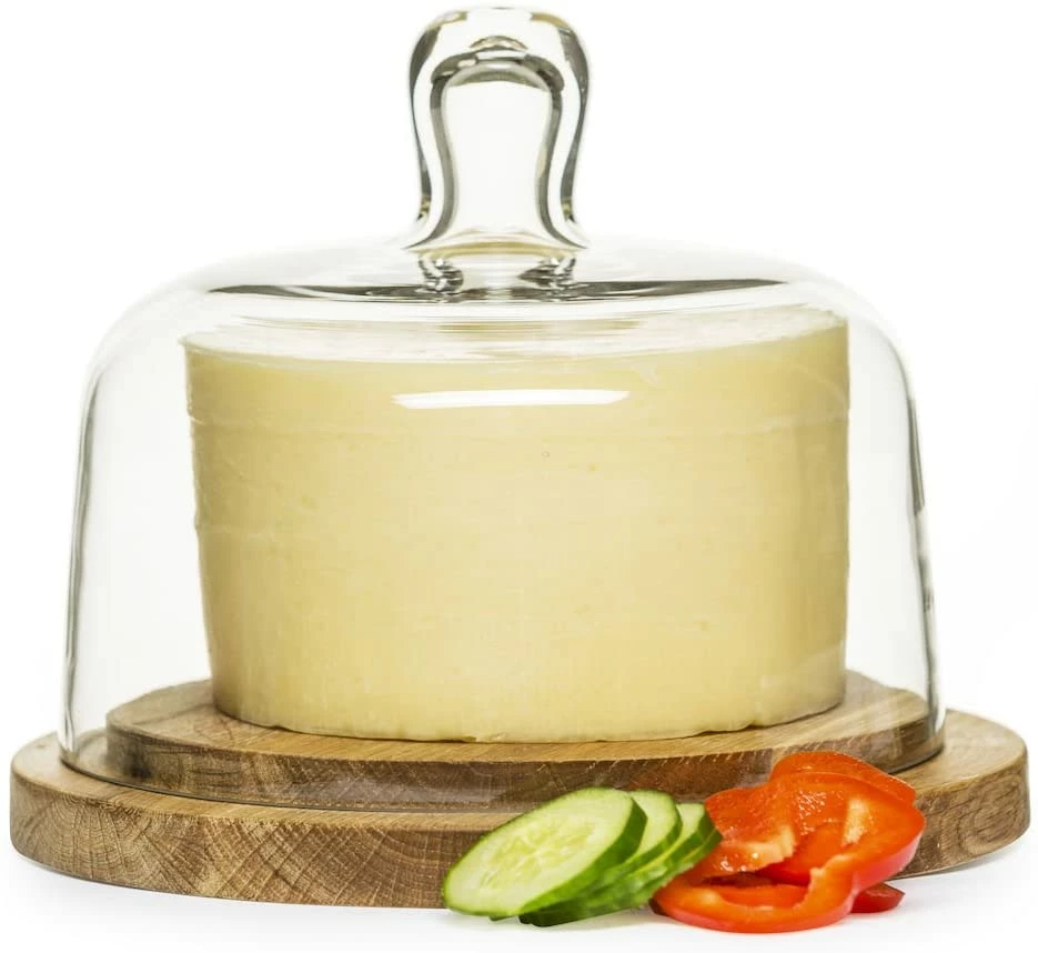 Cheese dome designed in solid oak with mouthblown glass cover. Perfect for setting an elegant table.