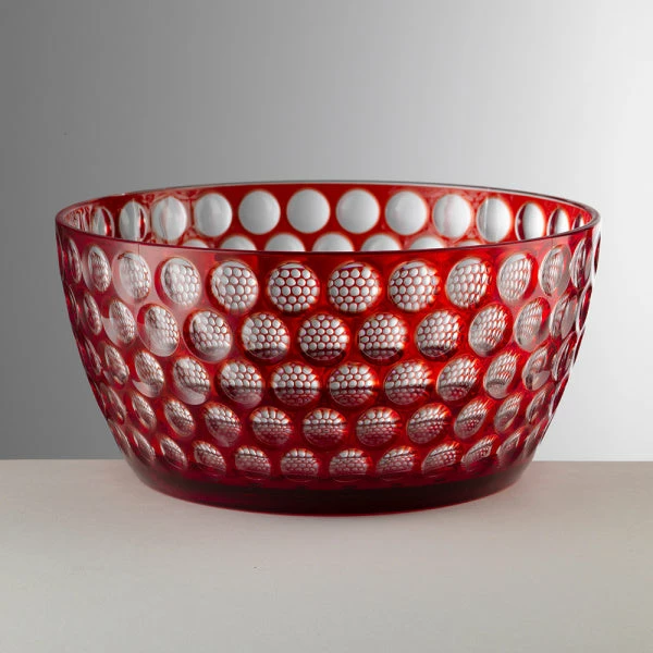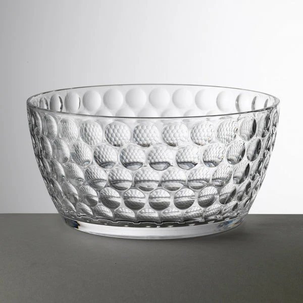 The Lente Clear Salad Bowl makes a statement on any table with its optical illusion geometric design against clear acrylic glass. This acrylic bowl looks like elegant glass but it has the durability and shatterproof nature of acrylic.