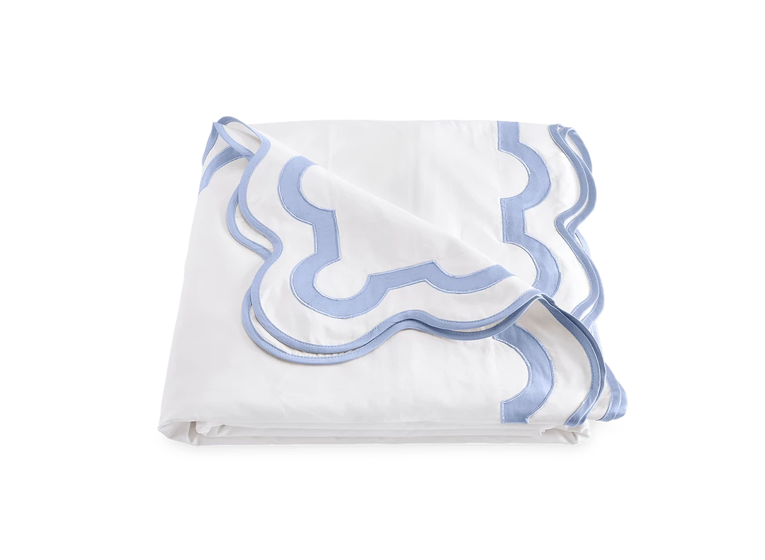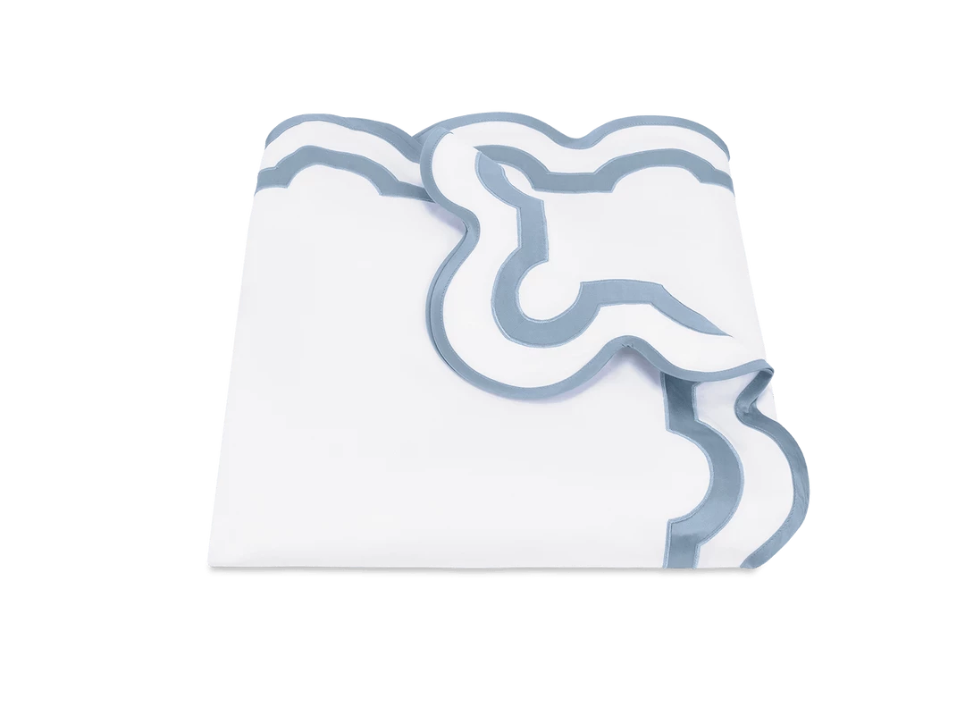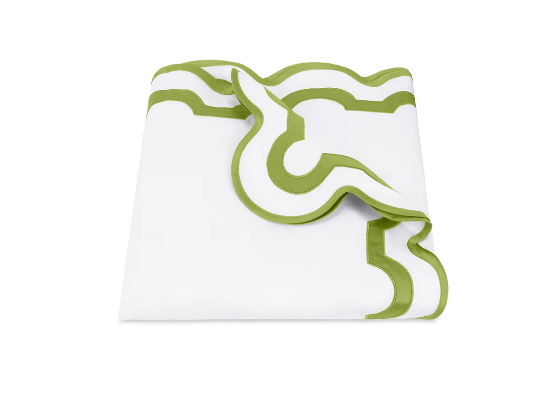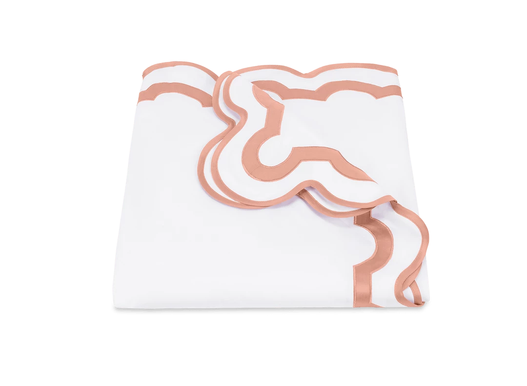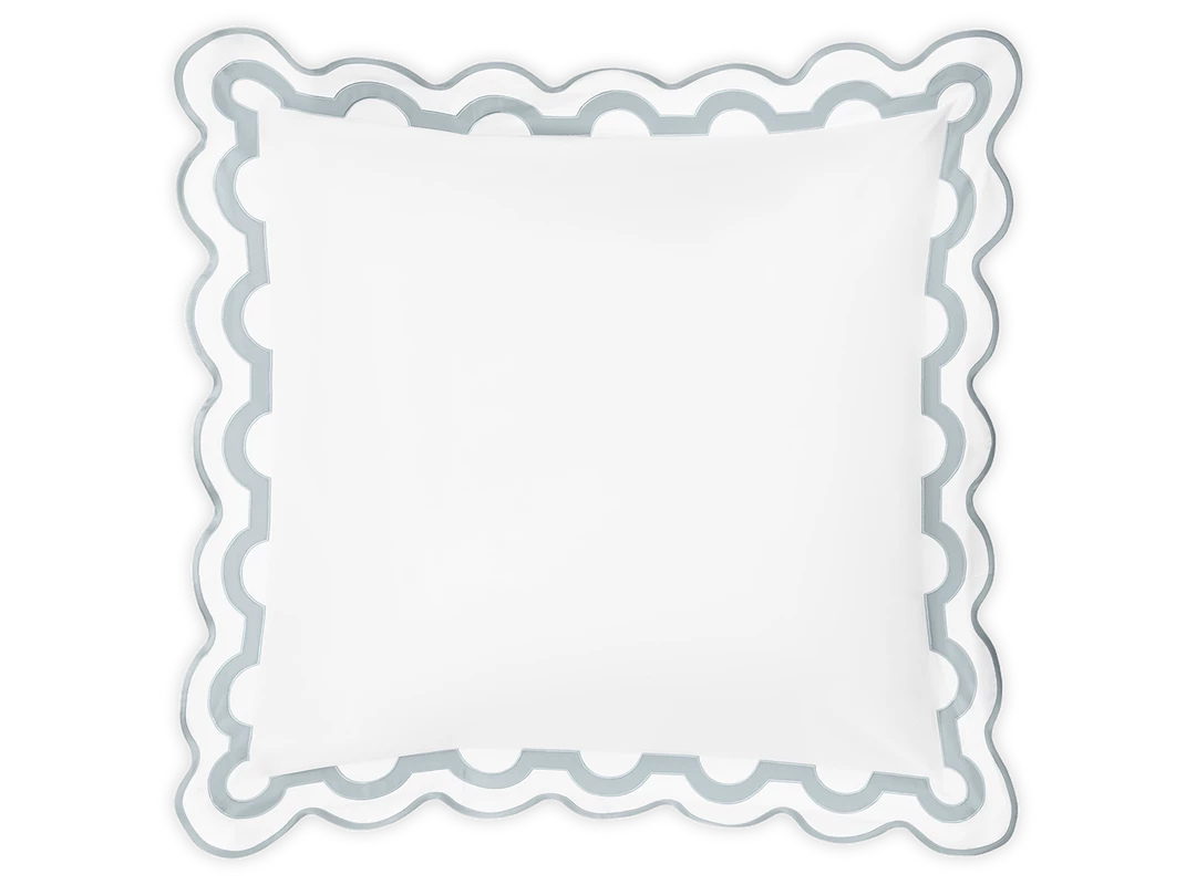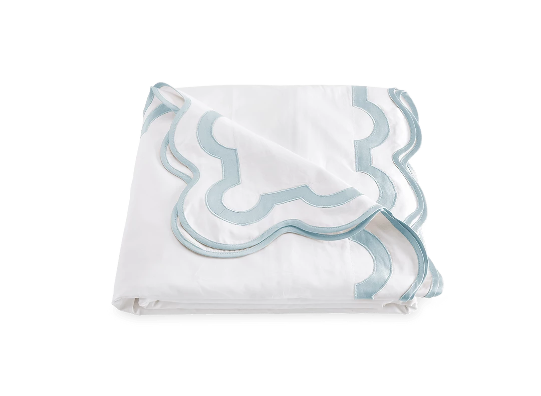 Inspired by a stroll down Worth Avenue in Palm Beach, the unique arch trim of shop awnings becomes a tasteful complement to our soft and luxurious 600 thread count Milano Egyptian cotton percale bedding, made in Italy.