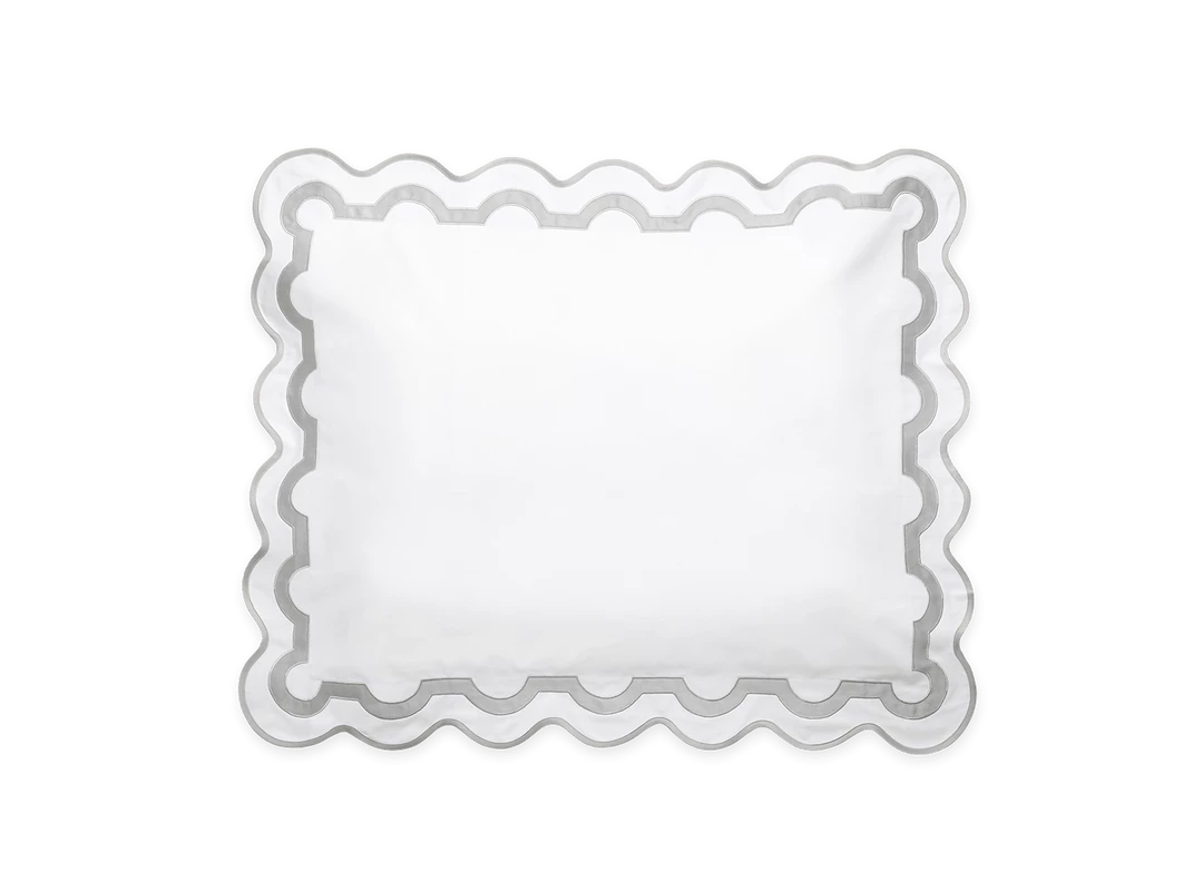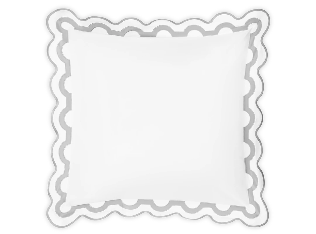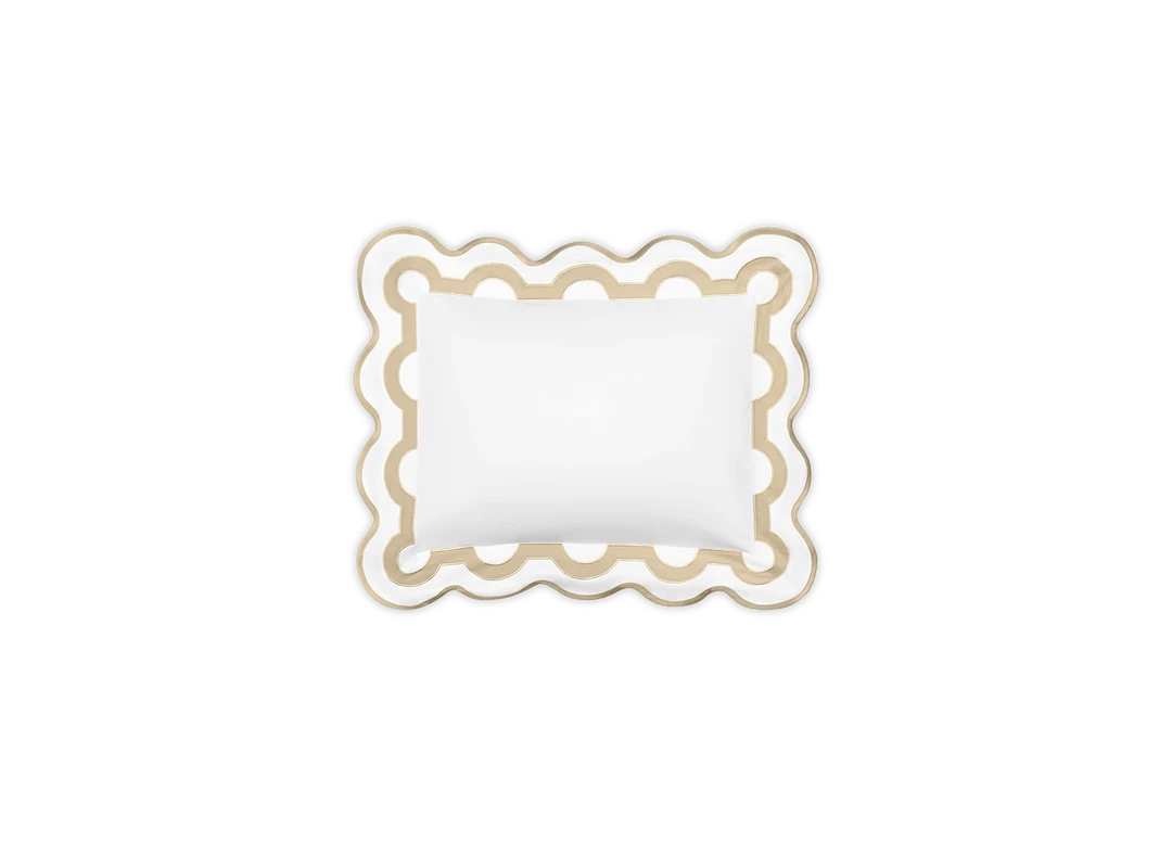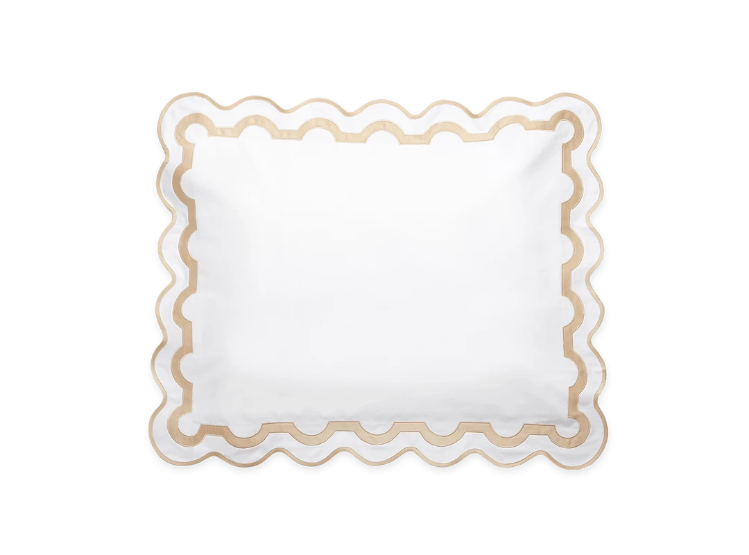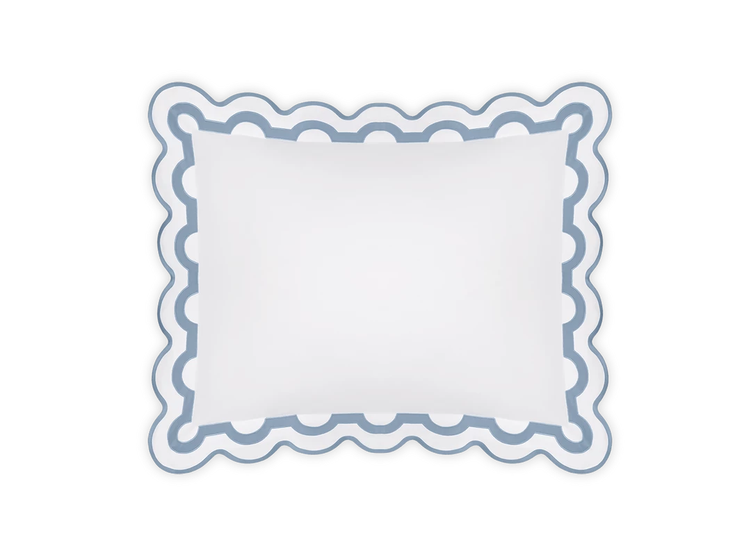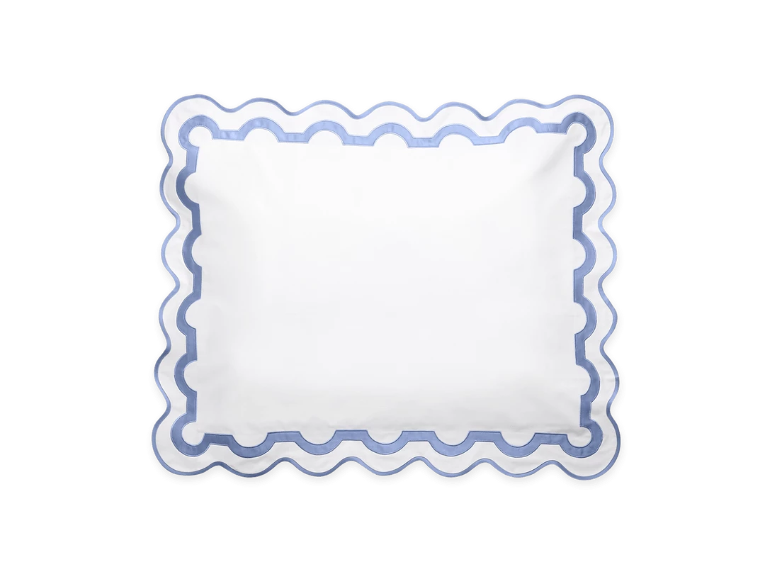 Inspired by a stroll down Worth Avenue in Palm Beach, the unique arch trim of shop awnings becomes a tasteful complement to our soft and luxurious 600 thread count Milano Egyptian cotton percale bedding, made in Italy.