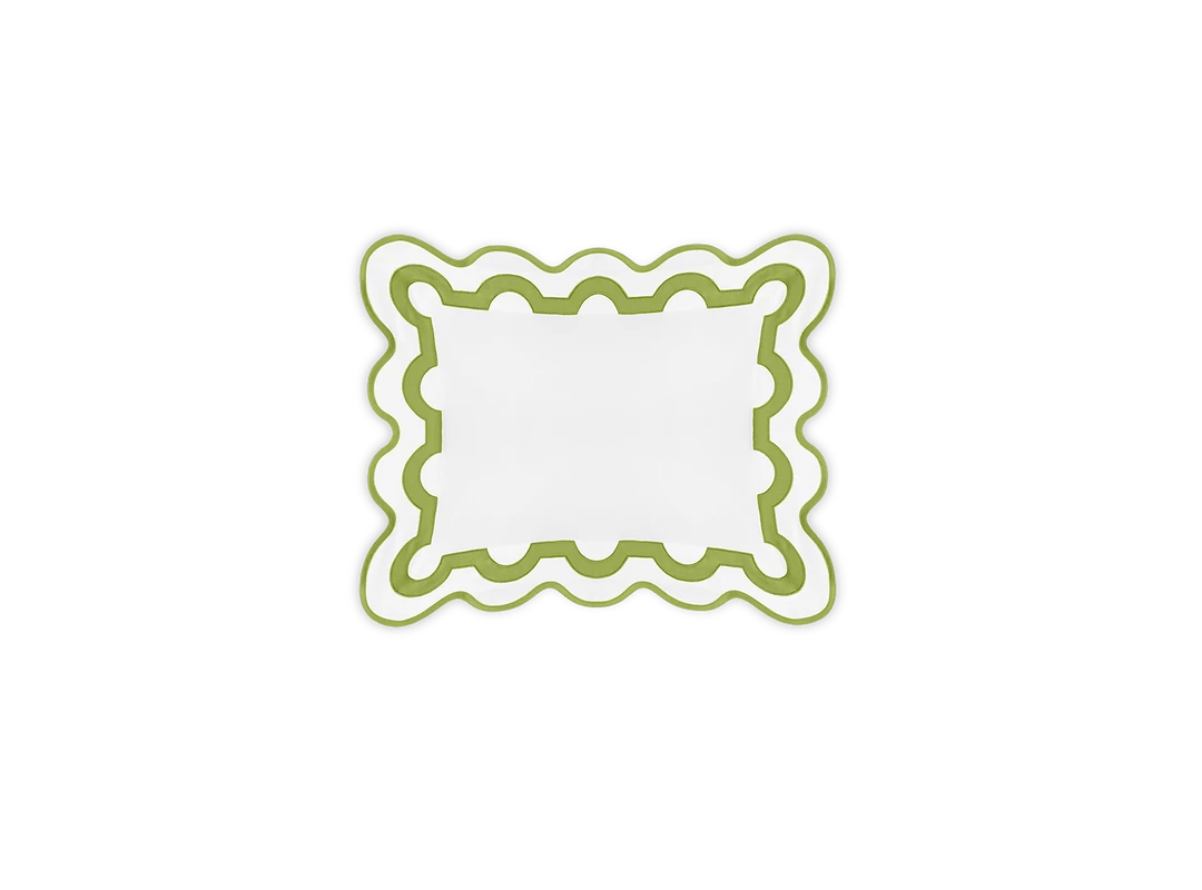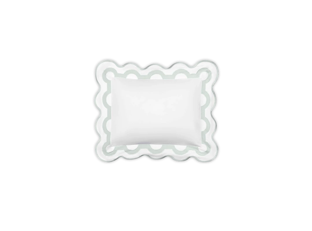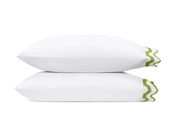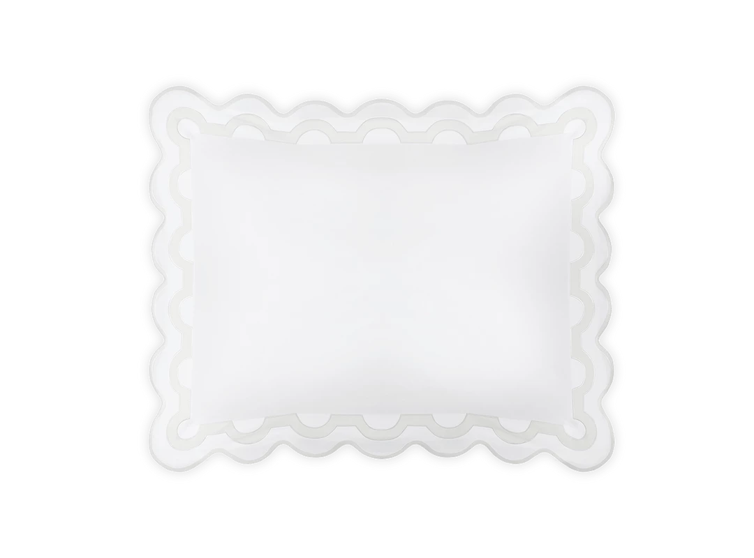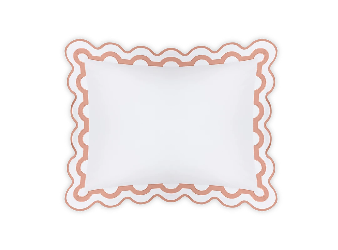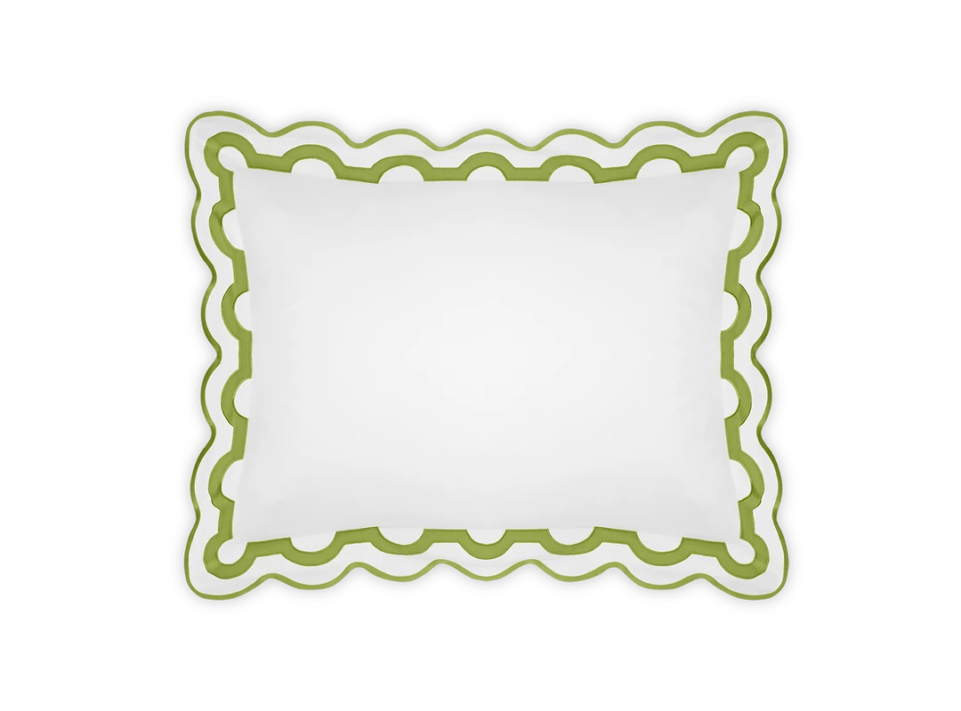 Inspired by a stroll down Worth Avenue in Palm Beach, the unique arch trim of shop awnings becomes a tasteful complement to our soft and luxurious 600 thread count Milano Egyptian cotton percale bedding, made in Italy.