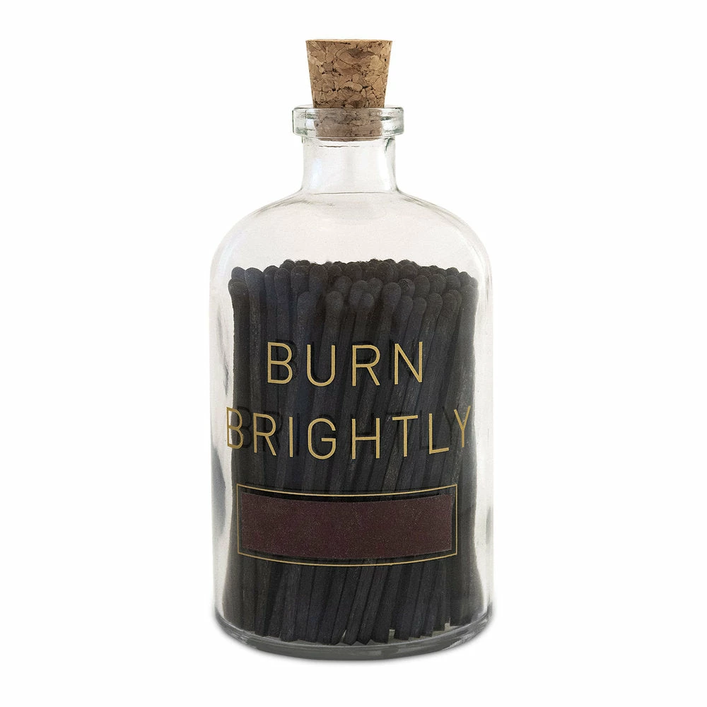 On dark winter days we could all use a little light. This match bottle features a matte gold “Burn Brightly” screen-print against the backdrop of all-black matches. Let this sentiment motivate you every time you light a candle or fire up the fireplace, and remind you to live every day to the fullest.