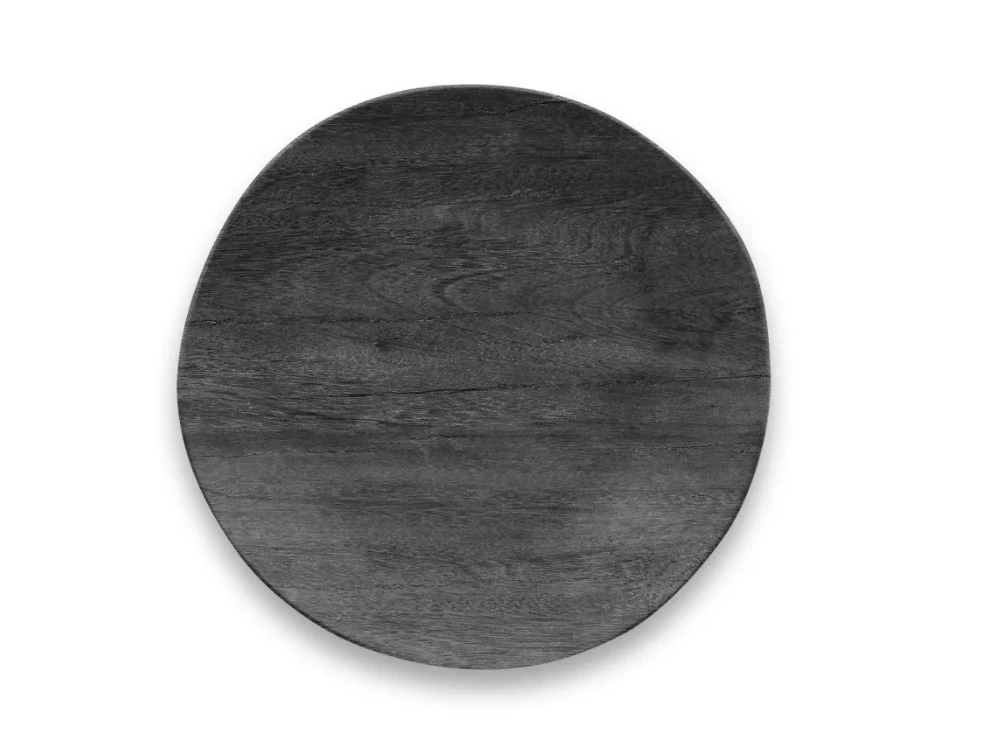 This dinner plate features the look of faux blackened wood and organic edge, and is great for indoor or outdoor entertaining.