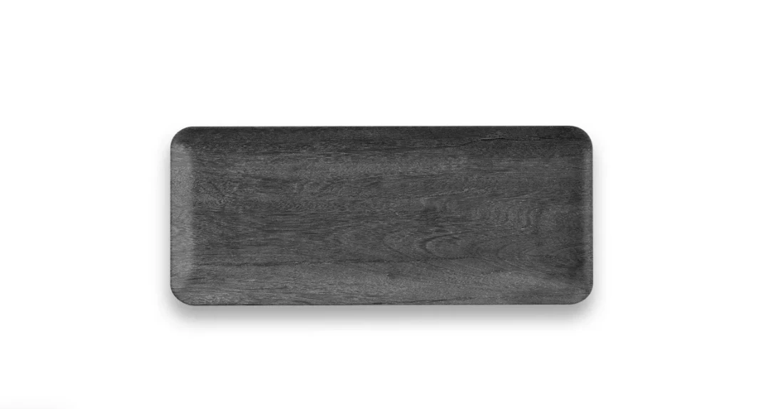 This faux wood melamine in a blackened finish works well with everything. Great for indoor or outdoor entertaining!