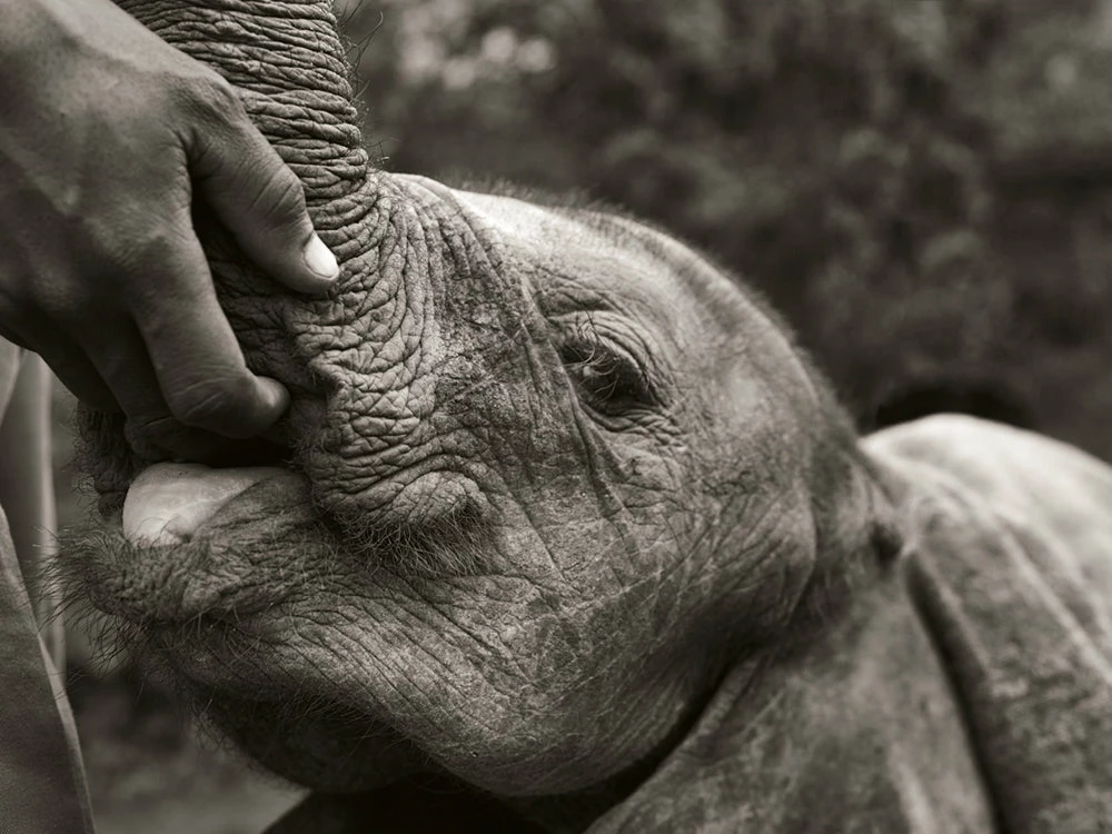 Because elephants are pachyderms, a combination of two Greek roots meaning “thick skin,” one might think that nothing bothers them and that they lead quiet, safe lives. Nothing could be further from the truth: elephants have been hunted and killed for their ivory tusks since antiquity. And people often ignore the calves left behind, who must now live out their lives as traumatized and fearful orphans. Wildlife photographer Joachim Schmeisser made it his mission to document the story of these abandoned baby elephants. Through his sponsorship of elephants, he came into contact with the David Sheldrick Wildlife Trust, the world’s largest and most successful rescue and rehabilitation operation for orphaned elephants, headquartered in Nairobi. Professional veterinary technicians bottle feed the elephant calves until they are old enough to locate their own food. Joachim Schmeisser followed numerous elephants through the entire process and captured fascinating pictures from their arrival at the nursery all the way to their release back into the wild.