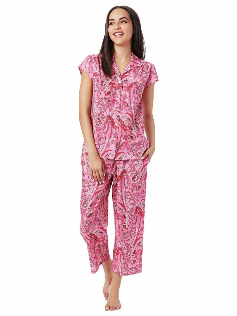 - Cropped, capri length pajama pant with pockets