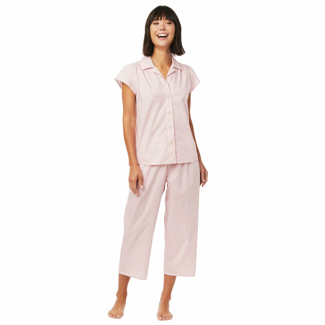 This women’s pajama set has a roomy, comfortable fit. Most people find this sleepwear to be larger than expected. This allows for a comfy fit and room for expected cotton sleepwear shrinkage, which is approximately 1″ in width and length.