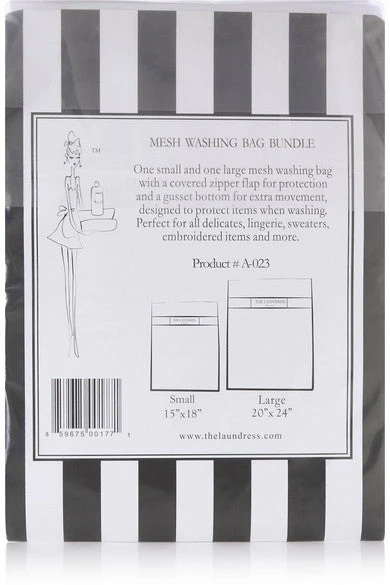 One bundle, two bags. These fine mesh-washing bags are designed with a covered zipper flap for protection along with a gusset bottom for extra movement while machine washing.