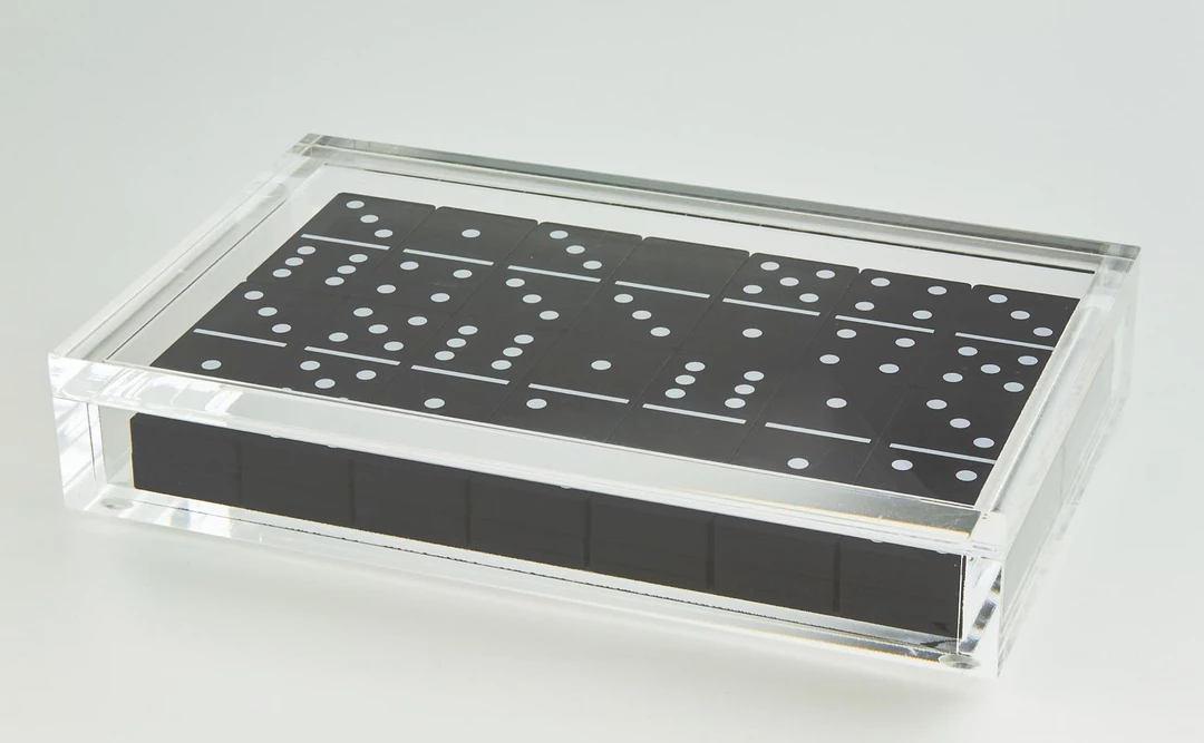 A beautiful and stylish domino set in a lucite box. Â