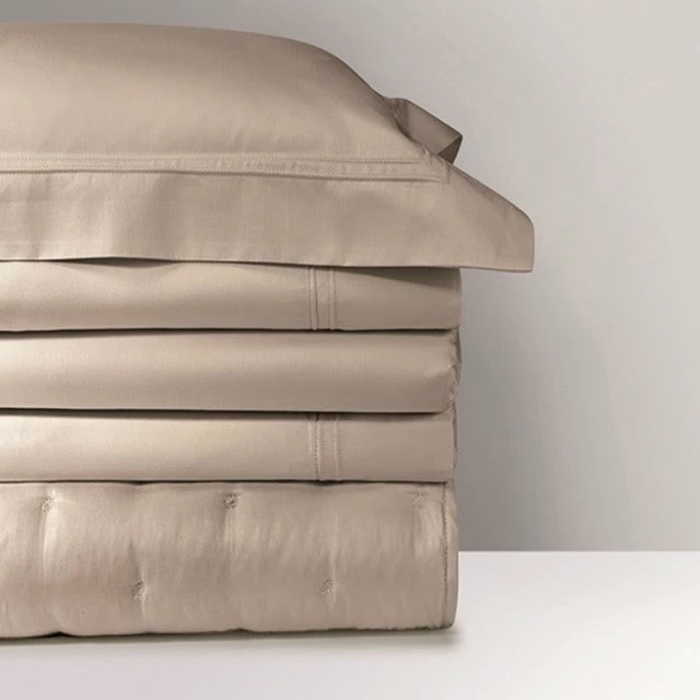 The Triomphe Collection is a solid bedding ensemble that creates a modern elegant look.