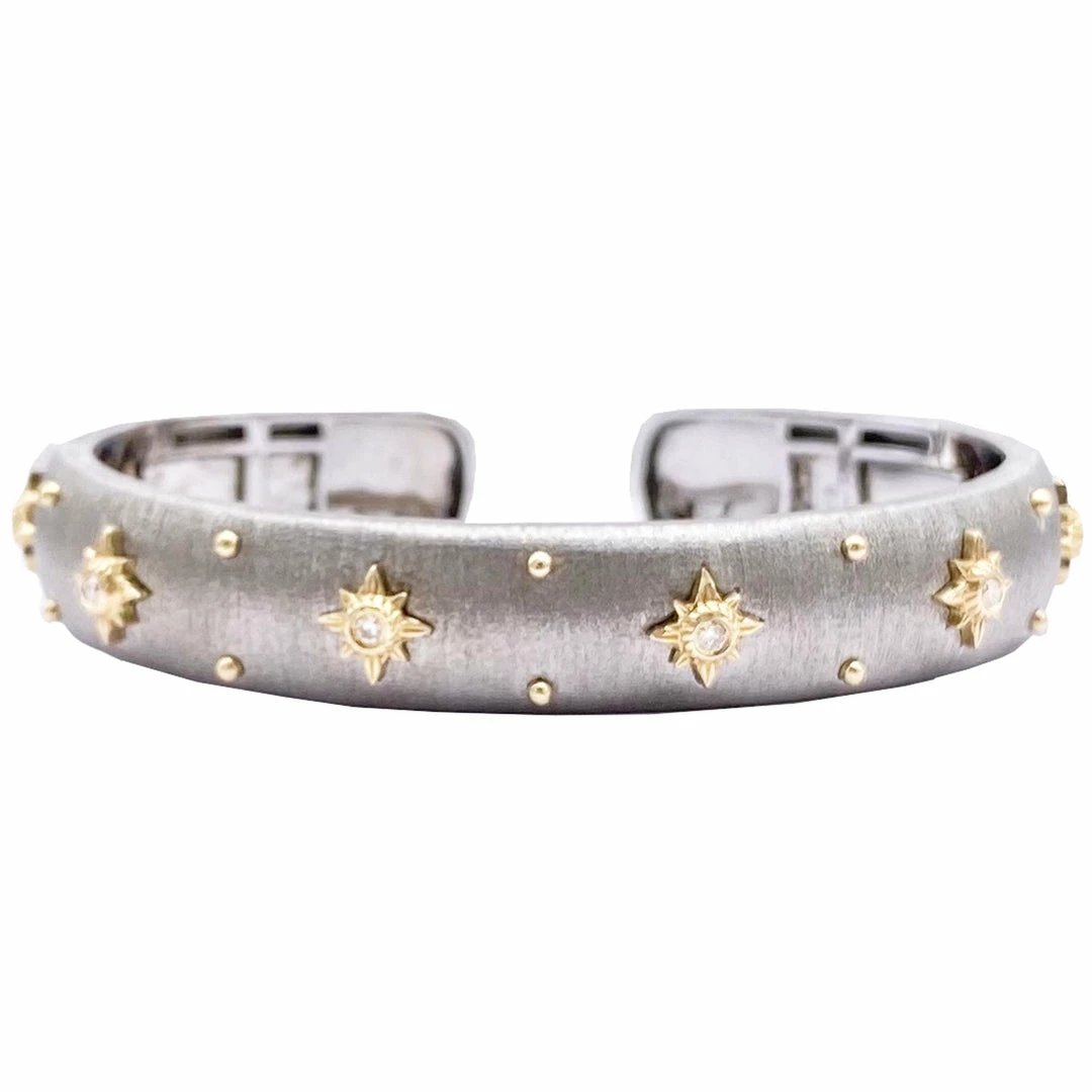 Vintage La Rose 14k Gold & Sterling Starburst Cuff