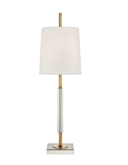 Lexington Medium Table Lamp in Hand-Rubbed Antique Brass and Crystal with Linen Shade.