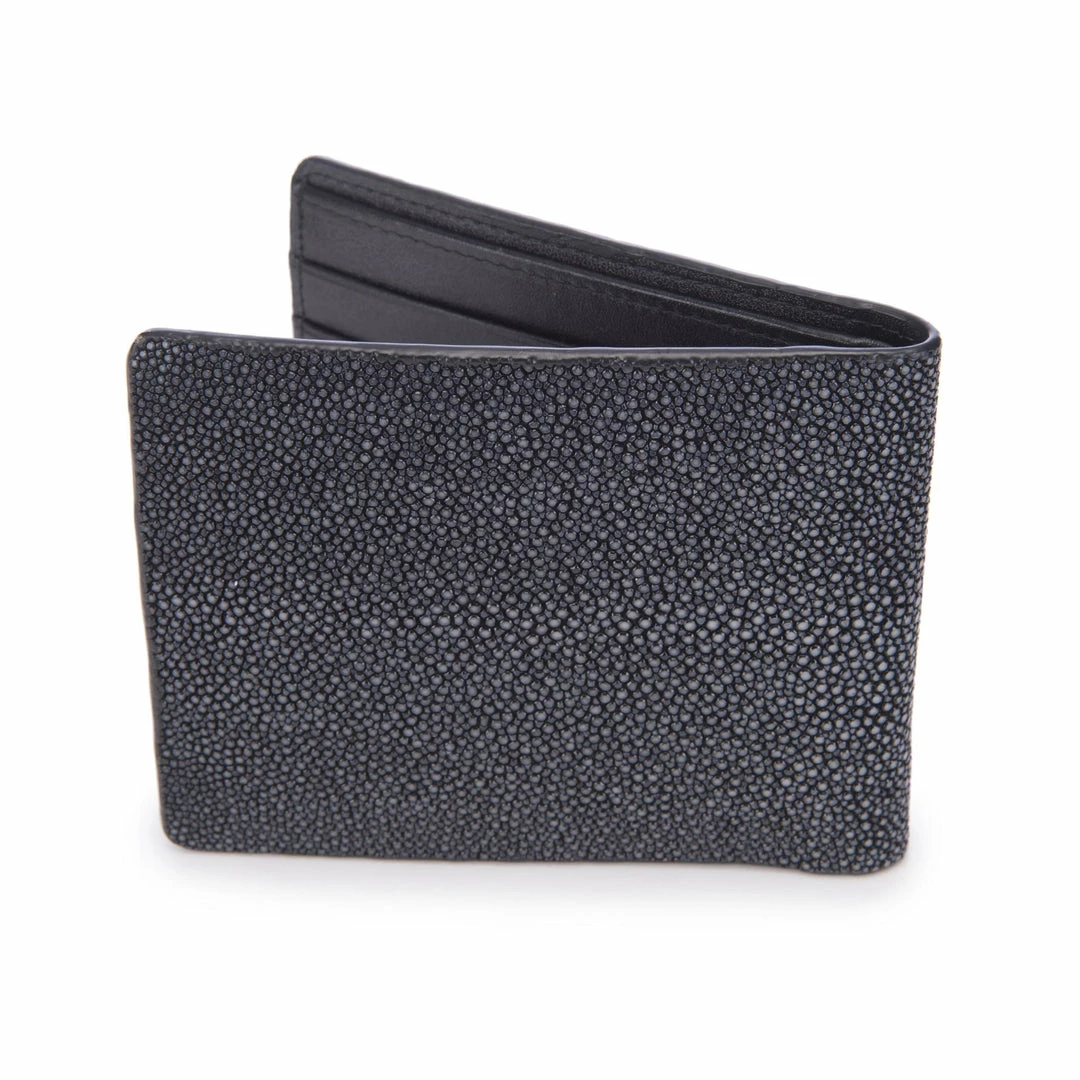 Genuine shagreen slim billfold, lamb skin interior lining.