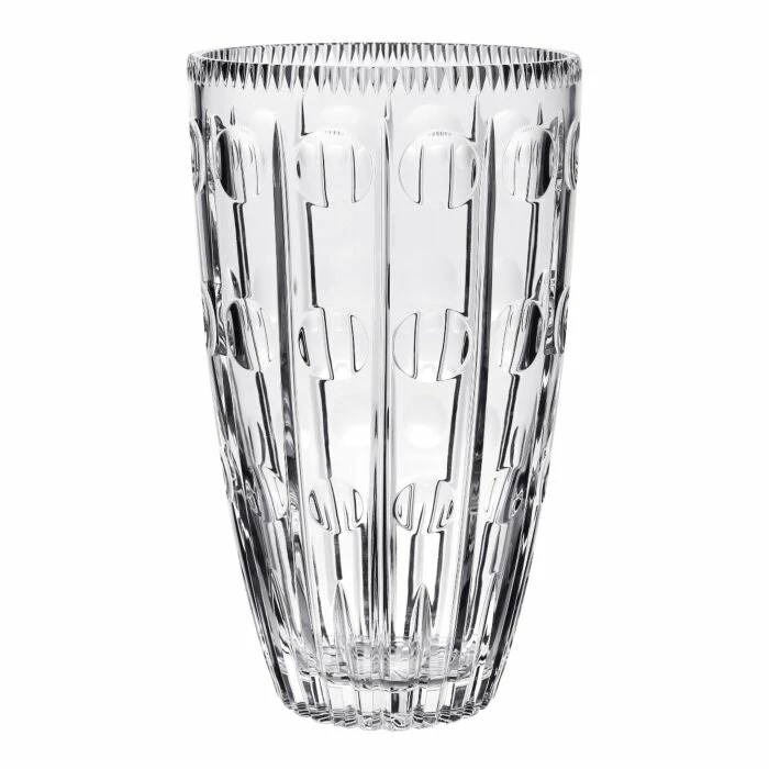 The Harlequin Flower Vase has been handcrafted by some of our most accomplished artists. The deep vertical cuts running from the top to bottom of the vase together with the circular disc cutting create a stunning architectural style and refraction of light through the pieces.